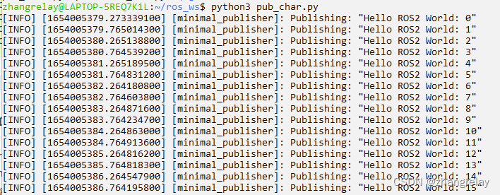 timer_callback 创建一个附加了计数器值的消息,并使用 get_logger().info 将其发布到控制台。