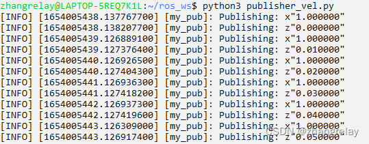 创建节点,这些节点以字符串消息/速度的形式通过主题发布。 这里使用的例子是一个简单的发布系统; 发布字符串或速度。