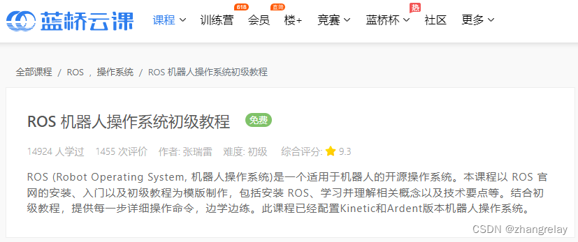 前3版关于ROS1的,已经在蓝桥云课中更新为主,学员数已经达到 14924 人:
