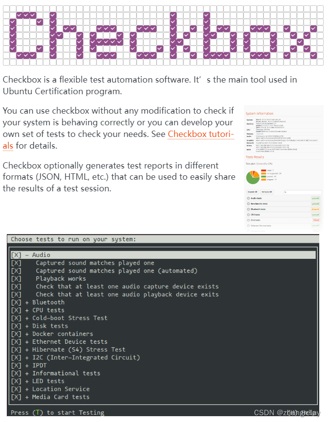 Checkbox 是一款灵活的测试自动化软件。 它是 Ubuntu 认证计划中使用的主要工具。