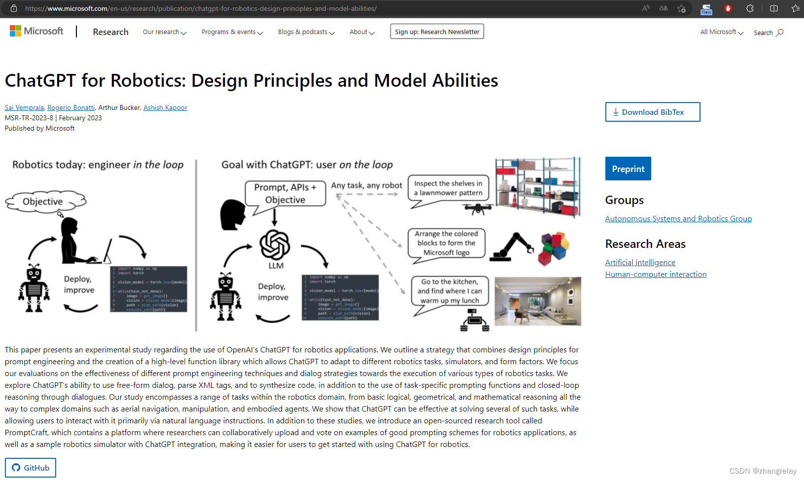 本文介绍了一项关于将OpenAI的ChatGPT用于机器人应用的实验研究。我们概述了一种策略,该策略结合了快速工程的设计原则和高级函数库的创建,使ChatGPT能够适应不同的机器人任务、模拟器和形状因素。我们的评估重点是不同的即时工程技术和对话策略在执行各种类型的机器人任务方面的有效性。除了使用特定任务的提示功能和通过对话进行闭环推理外,我们还探索了ChatGPT使用自由形式对话、解析XML标记和合成代码的能力。我们的研究涵盖了机器人领域的一系列任务,从基本的逻辑、几何和数学推理一直到复杂的领域,如空中导航、操纵和具体代理。我们表明,ChatGPT可以有效地解决其中的几个任务,同时允许用户主要通过自然语言指令与之交互。除了这些研究之外,我们还引入了一种名为PromptCraft的开源研究工具,该工具包含一个平台,研究人员可以在该平台上协作上传机器人应用程序的良好提示方案并对其进行投票,以及一个集成了ChatGPT的机器人模拟器示例,使用户更容易开始使用ChatGPT进行机器人。