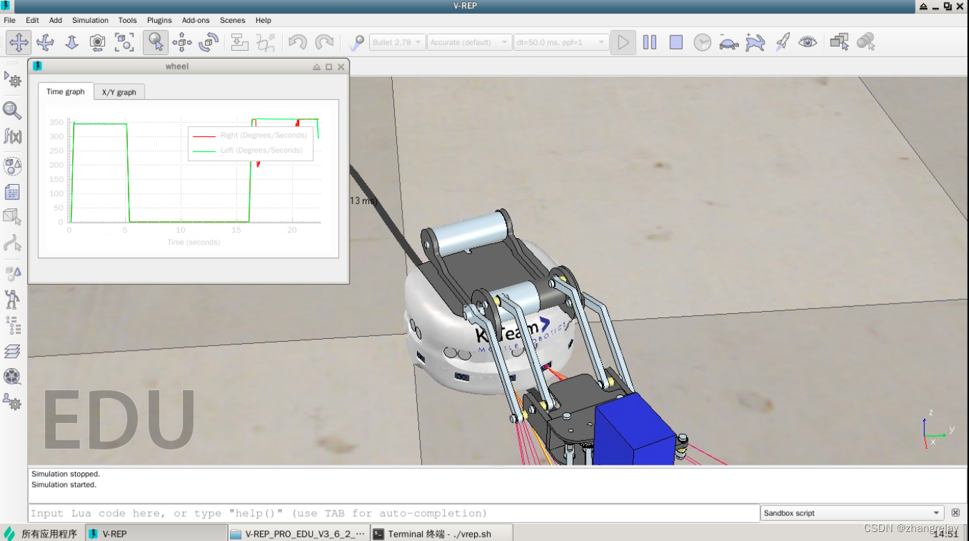 在环境中配置图表,显示机器人速度控制量,以左轮为例:
