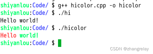 在C++语言中,可以使用ANSI转义码来输出彩色字符串。下面是一个输出彩色Hello world字符串的示例代码: