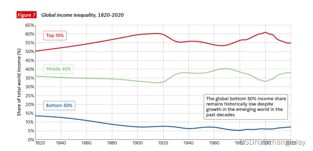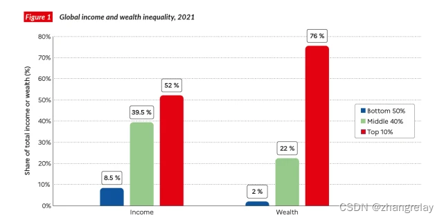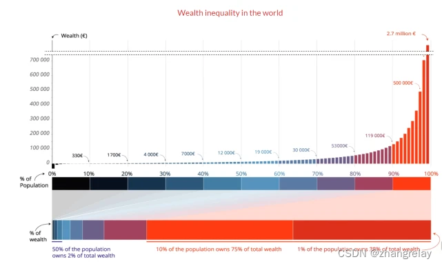 上图,最富有的10%拥有全球财富的75%以上,而最贫穷的一半只有2%。