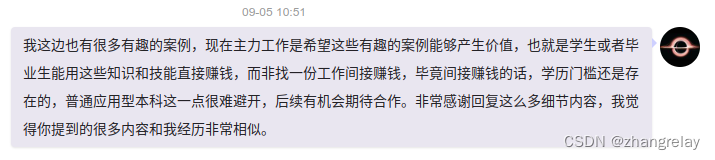 我这边也有很多有趣的案例,现在主力工作是希望这些有趣的案例能够产生价值,也就是学生或者毕业生能用这些知识和技能直接赚钱,而非找一份工作间接赚钱,毕竟间接赚钱的话,学历门槛还是存在的,普通应用型本科这一点很难避开,后续有机会期待合作。非常感谢回复这么多细节内容,我觉得你提到的很多内容和我经历非常相似。