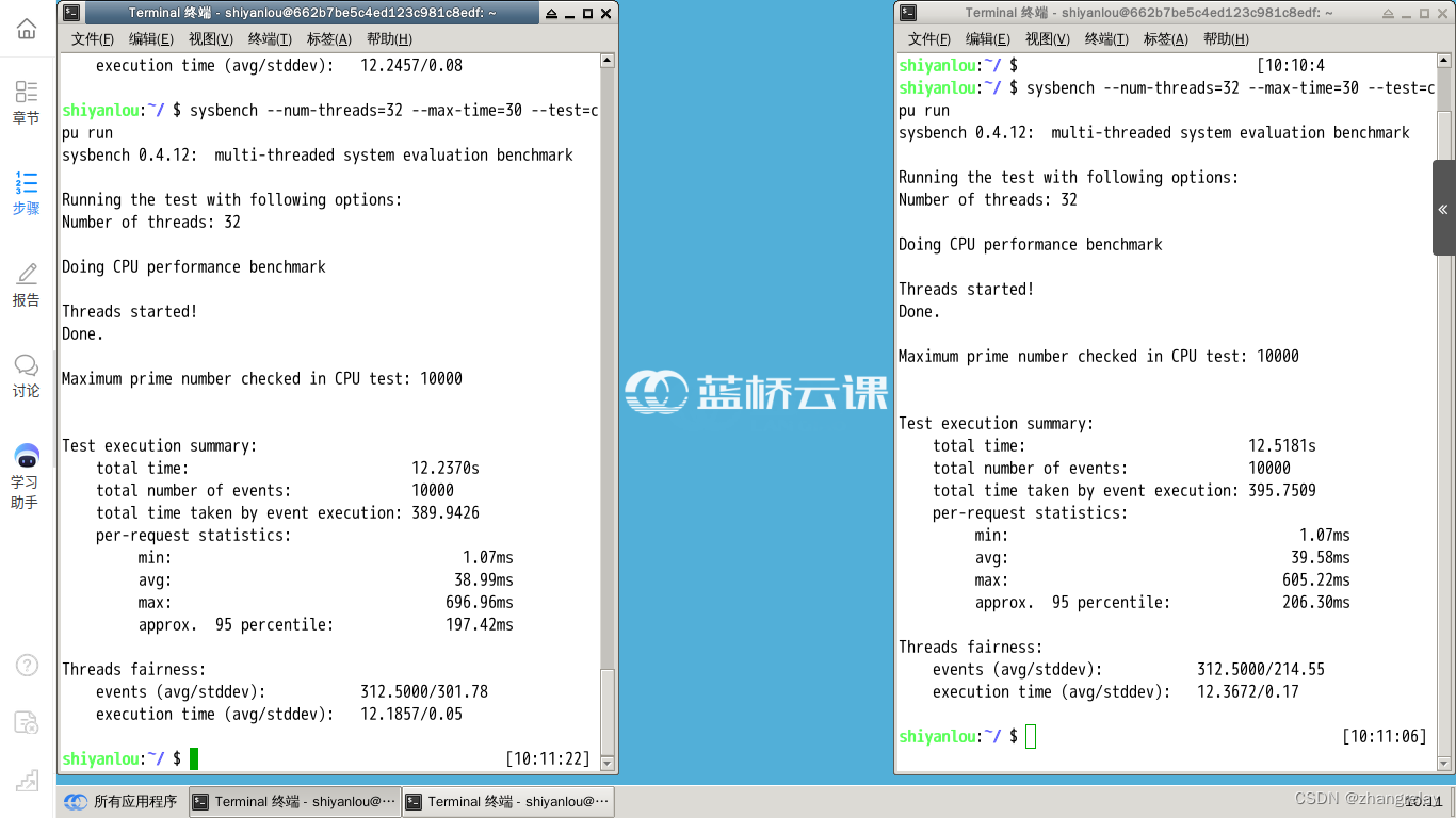 sysbench --num-threads=32 --max-time=30 --test=cpu run
