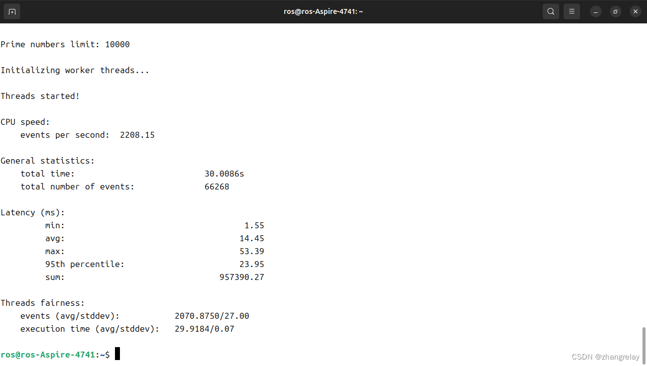 sysbench --threads=32 --time=30 cpu run