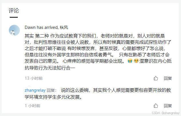 公开的交流需要极大的勇气,感谢留言交流和反馈的各位朋友。