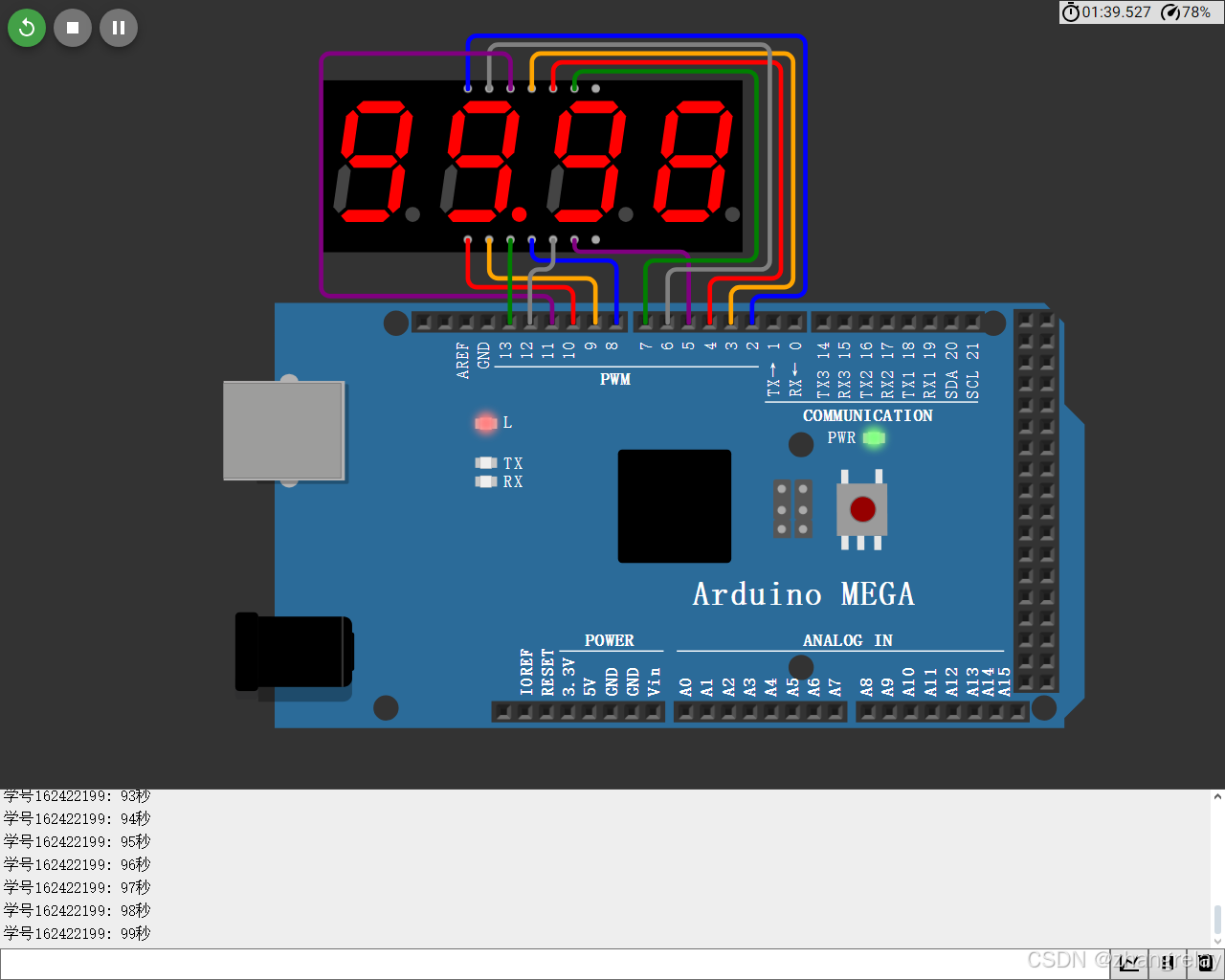 - 将代码上传到 Wokwi 平台上的 Arduino Mega 2560 仿真器。