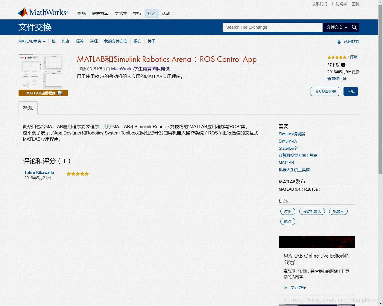 2. https://ww2.mathworks.cn/matlabcentral/fileexchange/67257-matlab-and-simulink-robotics-arena--ros-control-app?s_tid=prof_contriblnk