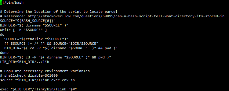 由于Cloudera Flink的默认安装路径为/opt/cloudera/parcels/Flink-${version},而执行/opt/cloudera/parcels/Flink-${version}/bin/flink 为整体环境配置,vi flink可查看到具体过程