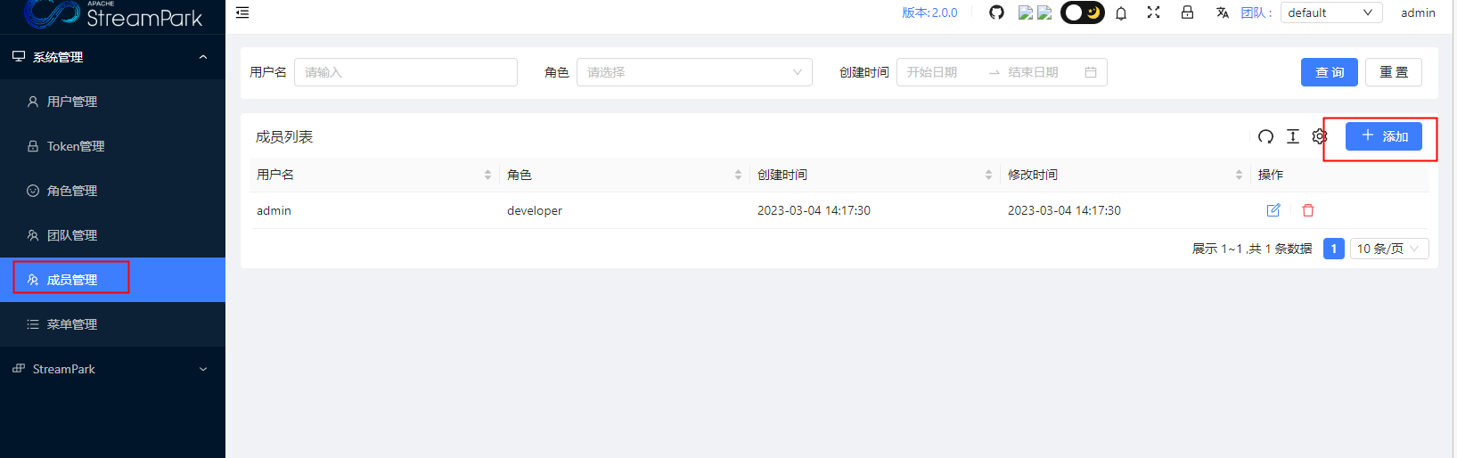 但是刚才使用ladp登录的用户,在streampark上已经创建对应的用户,须在成员管理里面将刚才创建的用户添加到对应的团队中,刚才那个用户才可以登录。