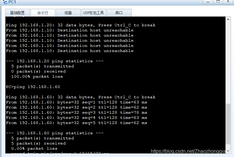 From 192.168.1.30: bytes=32 seq=5 ttl=128 time=63 ms