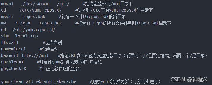 mount /dev/cdrom /mnt/ #把光盘挂载到/mnt目录下