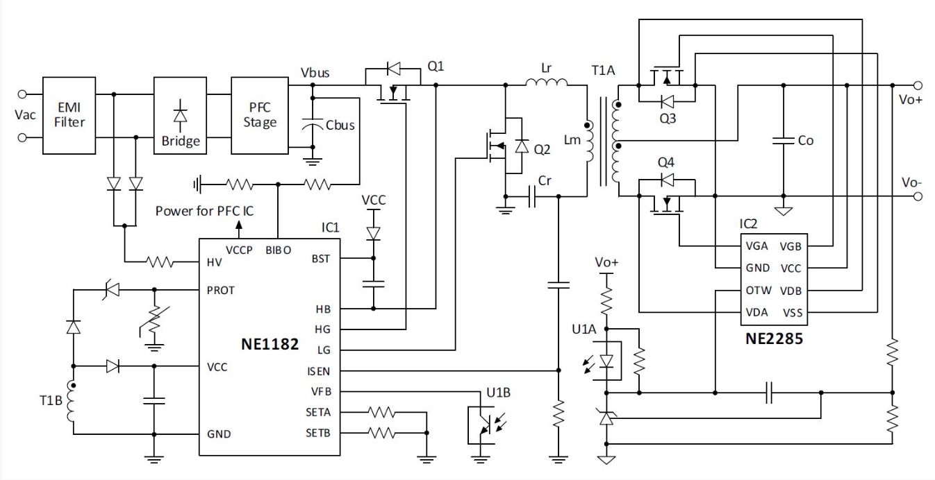 案子名称:NE1182 2000W LLCC芯片,集成800V半桥驱动,拼对拼替换NCP1399