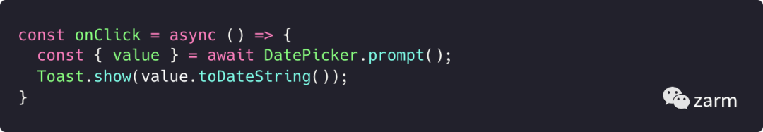 首先,我们对所有弹层交互组件增加了指令调用方式,这样就不再需要添加大量的代码来实现弹层的状态管理,只需通过简单的指令式调用,就可以在任何地方轻松使用弹层组件。