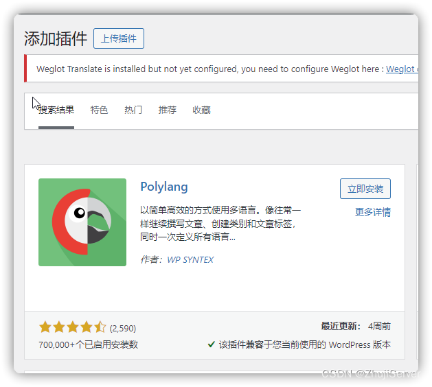 Polylang:这是一个免费的多语言插件,功能强大且易于使用。它支持无限多语言和自动翻译。接下来我们提供针对这个免费插件的安装。