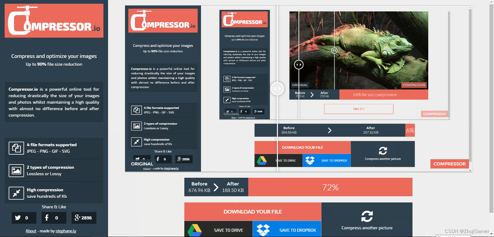 压缩机 - 简单,免费在线工具(如下图...显示此工具也用于图像!您可以看到此图像的尺寸减少了72%)