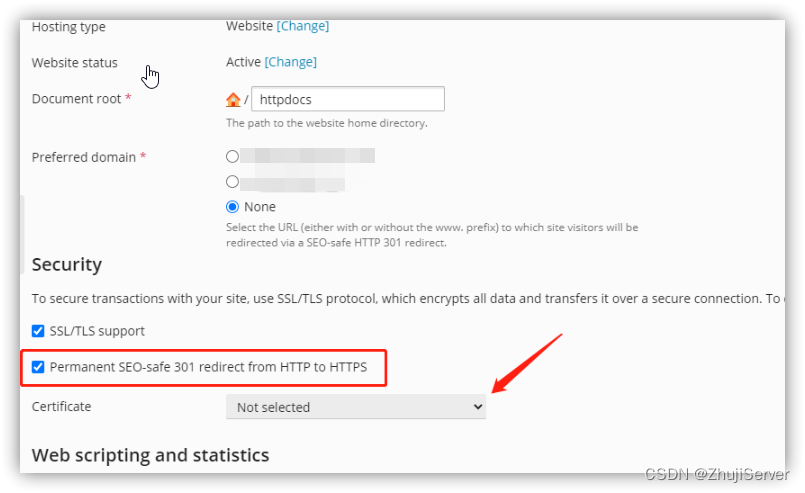 2.进入后 勾选301跳转,并且注意下方证书是否有正常选择,是需要选择证书后勾选保存的: