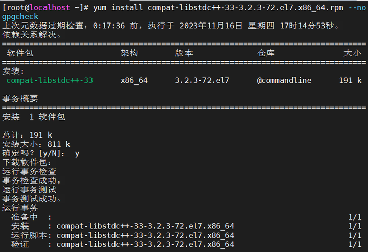 yum install compat-libstdc++-33-3.2.3-72.el7.x86_64.rpm --nogpgcheck