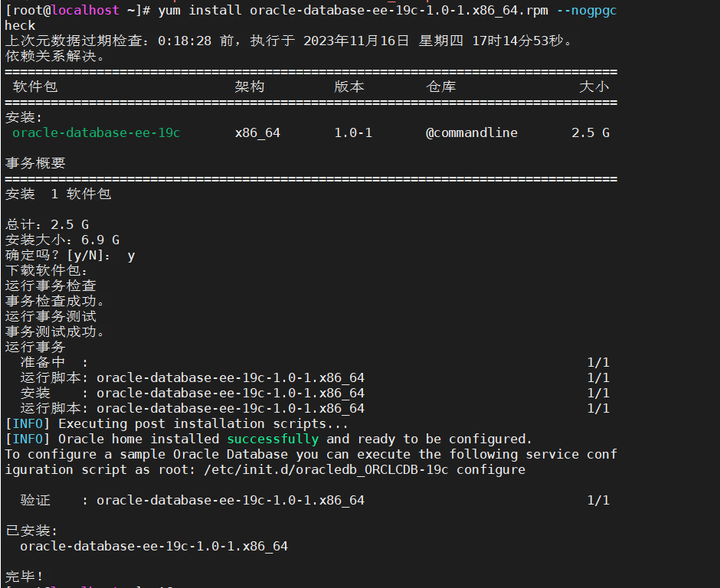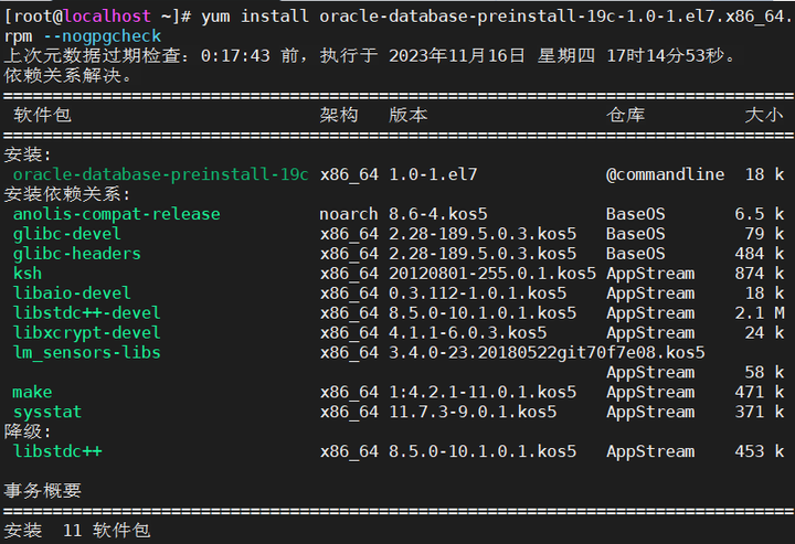 安装Oracle19c之前,需要安装preinstall,在安装包存放目录下执行安装命令: