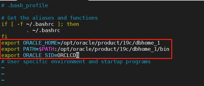 进入oracle用户,打开.bash_profile文件进行内容追加: