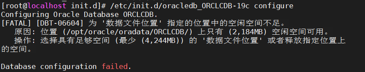 初始化前需保证至少有4244MB的空间,否则会失败:
