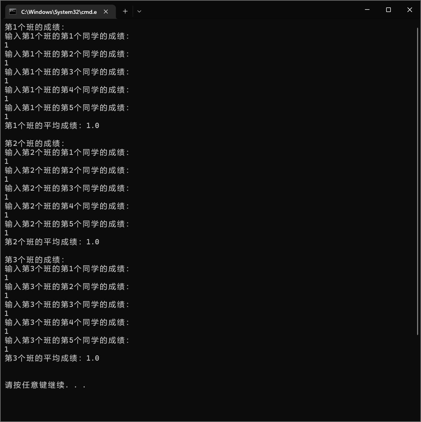 System.out.println("第"+i+"个班的平均成绩:"+ave);