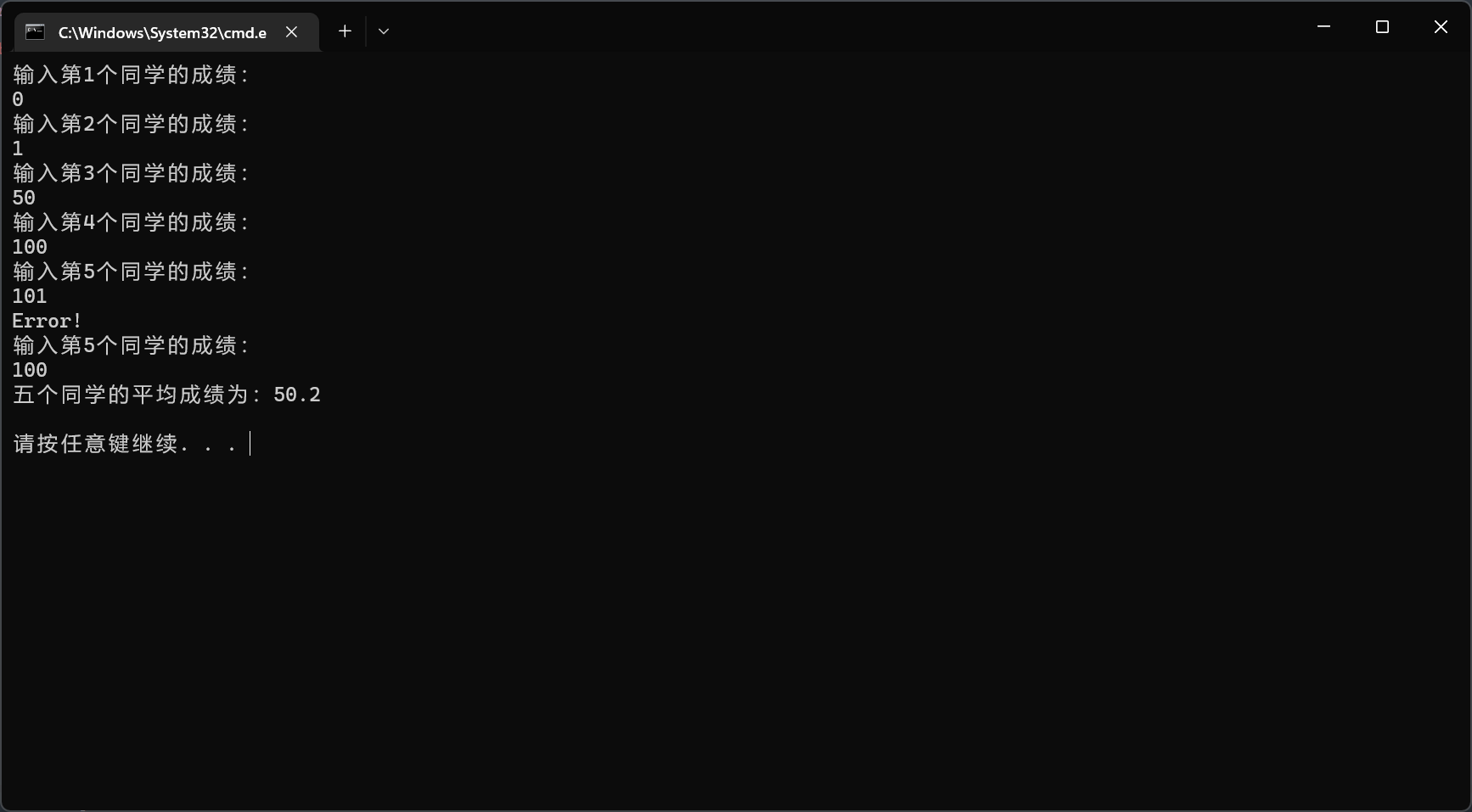 continue;//在输入的成绩不符合0~100之间时,跳出本次循环