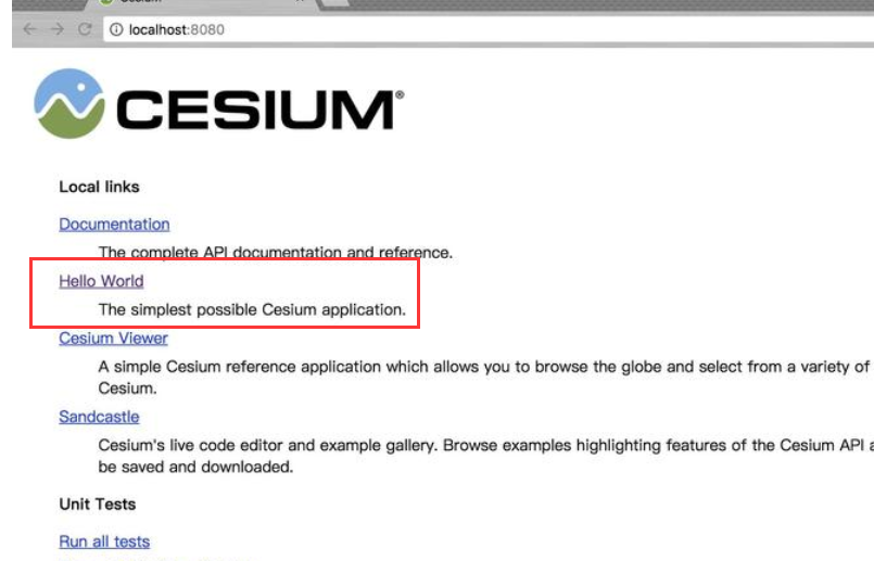 其实搭建完环境、部署好Cesium之后,其实都有官方的Hello World: