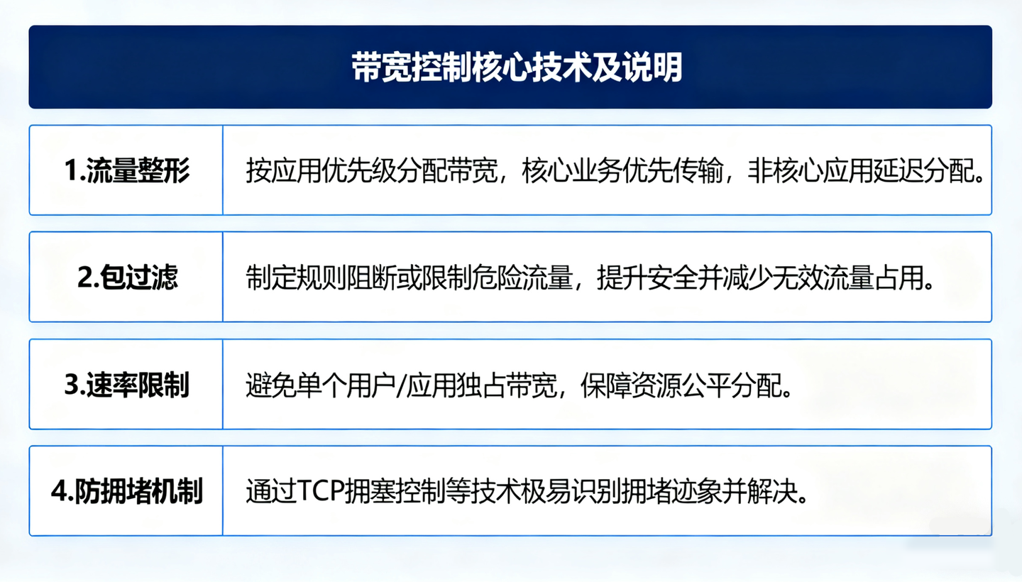 管好带宽光有思路不够,还得靠技术落地。这 4 个核心技术,能帮企业从 “被动应对” 转向 “主动管控”: