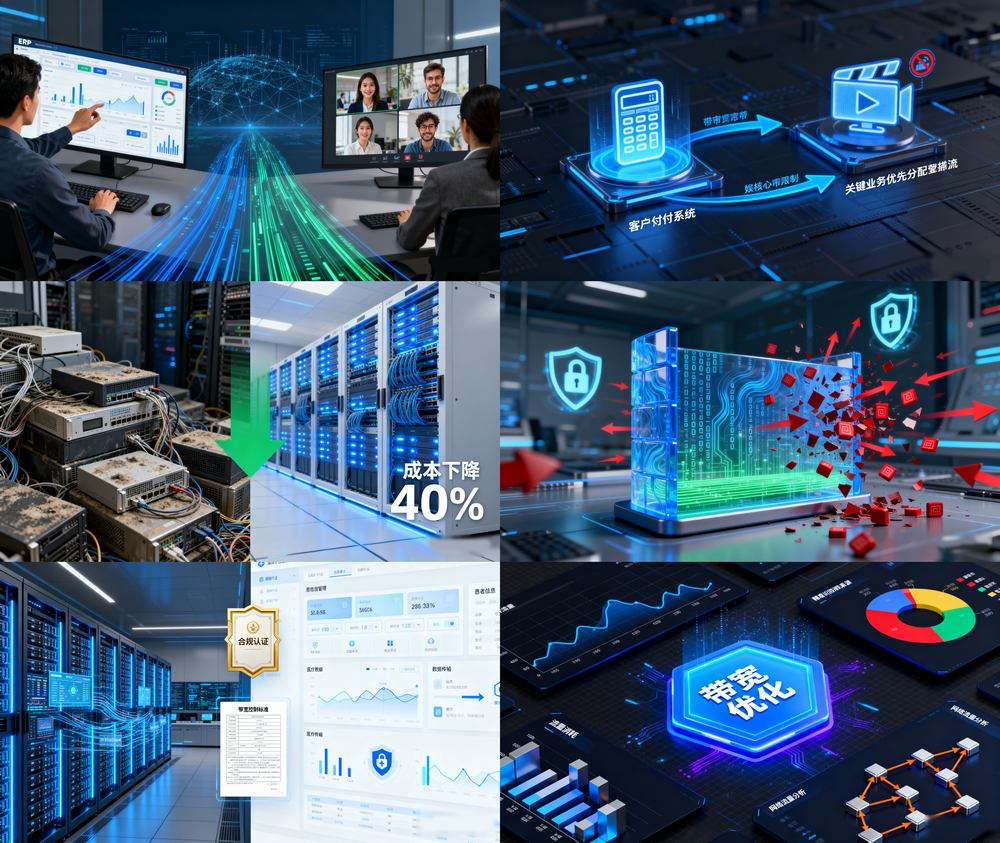- 优化网络性能:减少延迟、避免拥堵,让 ERP、视频会议等核心应用 “不卡顿”;