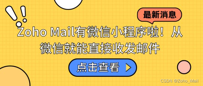 Zoho Mail有微信小程序啦!从微信就能直接收发邮件。可实现:从微信直接查看邮件、撰写新邮件、回复邮件。对于那些想从手机访问Zoho Mail企业邮箱来收发邮件,但又不想下载Zoho Mail 的手机app来占用手机存储的用户来说,微信小程序实在是很方便。