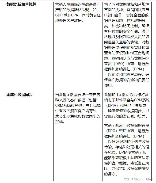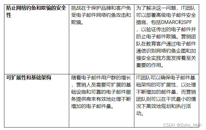 当你的受众浏览他们的收件箱时,他们会遇到一些挑战,比如由于收到的电子邮件数量太多而导致电子邮件过载,导致重要信息丢失。当营销电子邮件缺乏个性化和相关性时,收件人可能会变得无所事事,甚至取消订阅。此外,欺骗性营销电子邮件会带来网络钓鱼风险,危及收件人的敏感信息和安全。此外,营销电子邮件中的过度沟通和过度数据共享可能会引发用户的隐私问题。