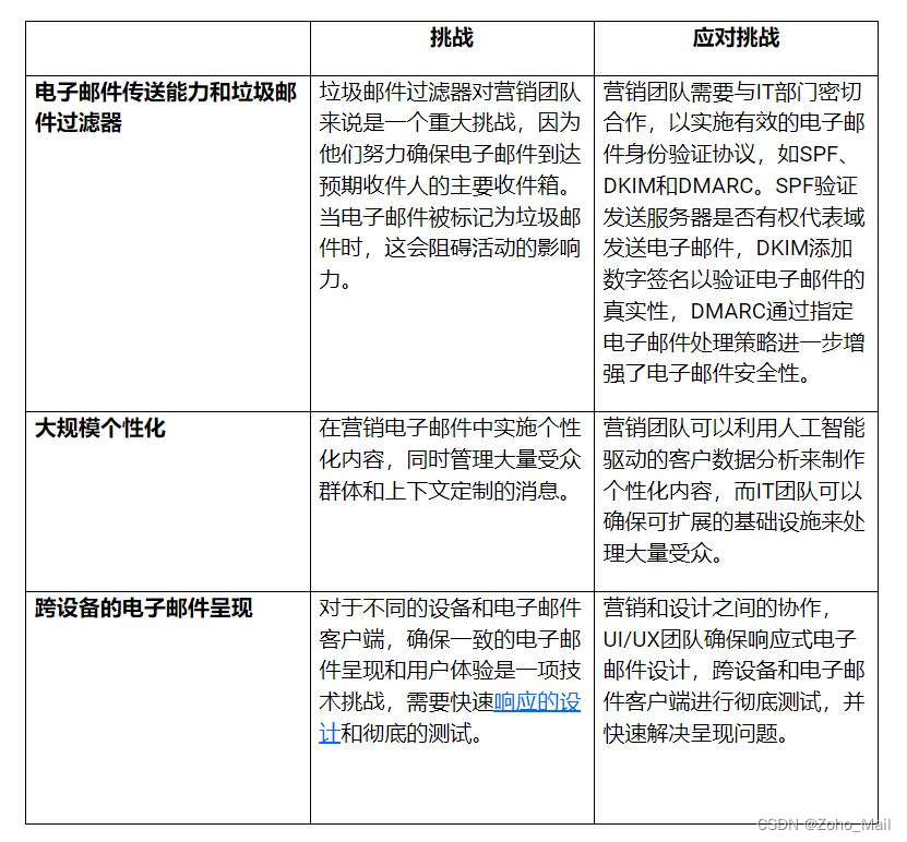 营销团队在管理和优化营销电子邮件以实现预期结果方面面临着一些挑战。应对这些挑战需要营销和IT团队之间的密切合作,利用技术专业知识和创新解决方案来创建无缝且有影响力的营销电子邮件活动。以下是一些挑战:
