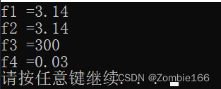 cout << "浮点型f = " << f << endl;