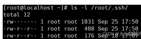 5.检查是否成功产生密钥:ls -l /root/.ssh/