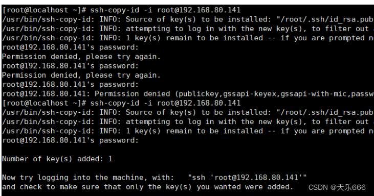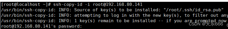 6.将公钥传输放到服务器上:ssh-copy-id -i root@192.168.80.141