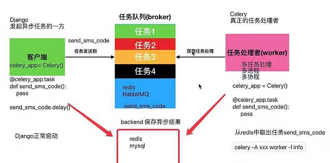 Worker是Celery提供的任务执行的单元,worker并发的运行在分布式的系统节点中(本质,一个work就是一个进程)。 - 任务结果存储(backend)