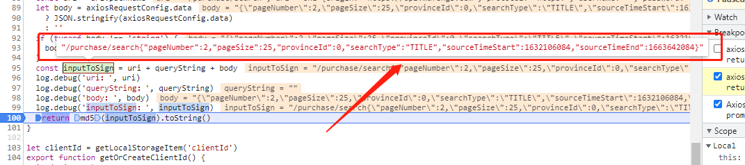因为这个headers加密 所以我们直接进入堆栈中找请求参数