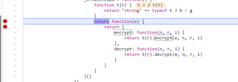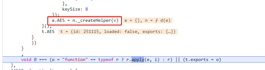 可以发现 e.AES = n._createHelper(v) 这个地方就是我们加密初始化的地方。