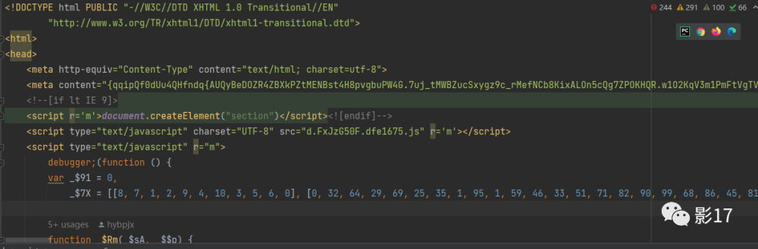 在正式分析以前。我们需要固定一份静态代码。因为瑞数的网站返回的内容每次都是动态的,不方便我们调试。后续我们把这份静态代码放到 node 里就能慢慢的去补了。