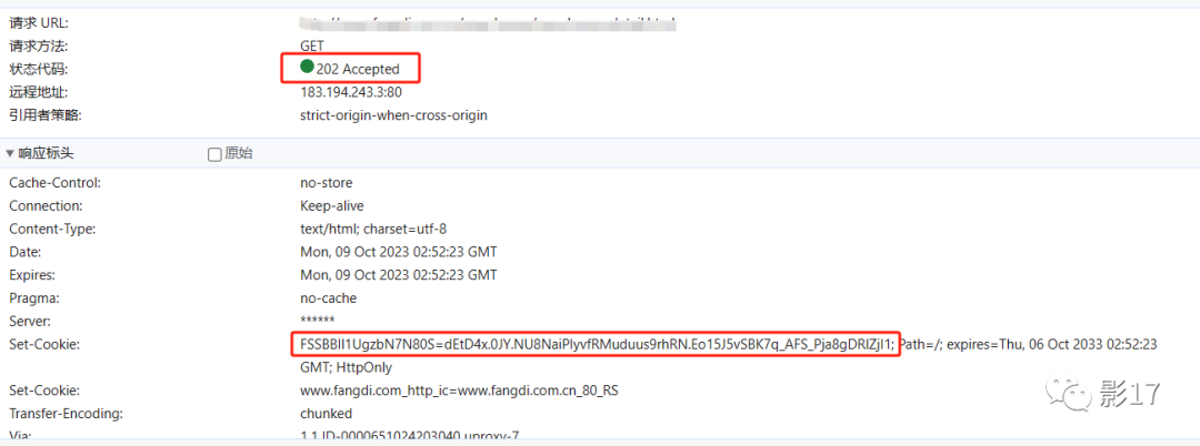 可见首先这是个 202 请求,其次他自返回了一个cookie: FSSBBIl1UgzbN7N80S。