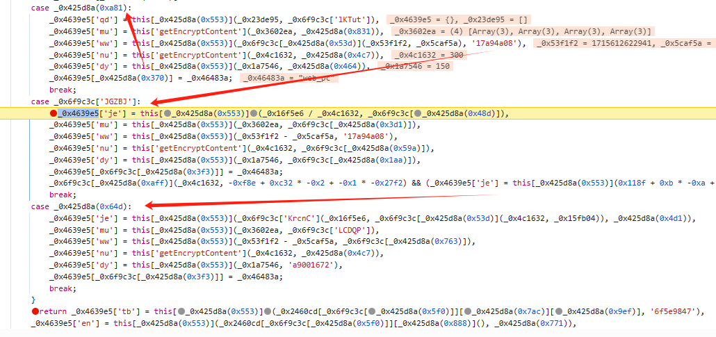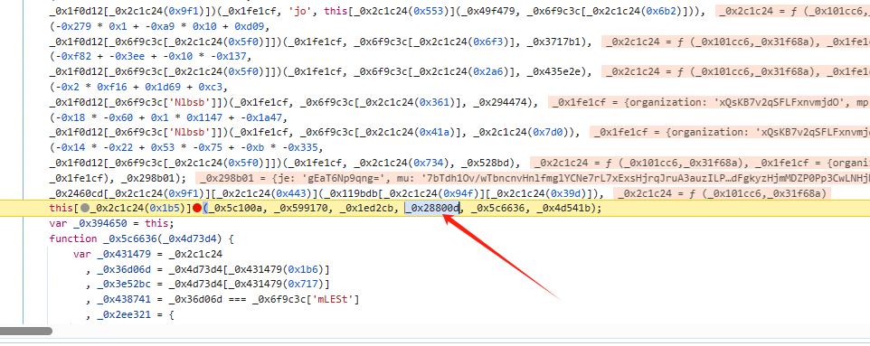 其实断点打在这里。可以明显看出 第一个值是加密的值。第二个值是密钥。