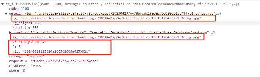fg: 滑块缺口地址 PS:这里如果是其他验证码 fg会变成order。order是提示信息。了解一下就行。本文不展示了。
