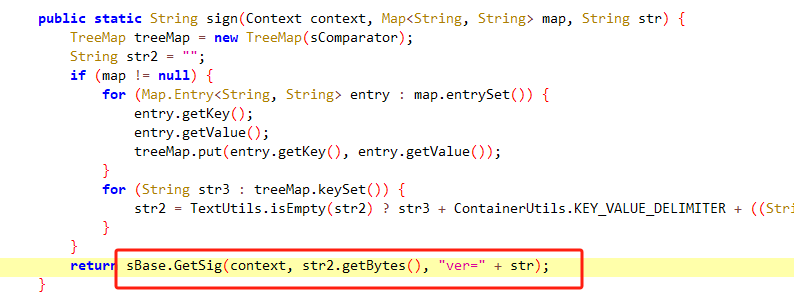然后发现这里上面是逻辑层的判断。下面是调用了 sbase的getSig