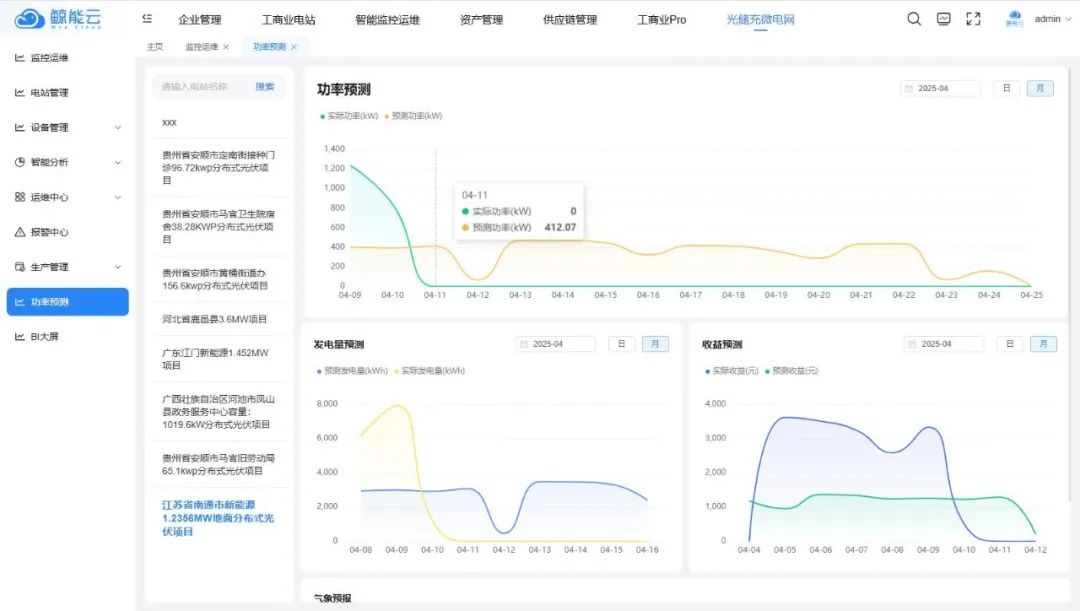 鲸能云通过集成先进的气象数据与电网模型,实现了对发电量15至45天的精准预测。这一功能不仅帮助企业动态优化用电策略,还能在电价波动中做出更加明智的决策,从而显著提升交易收益。