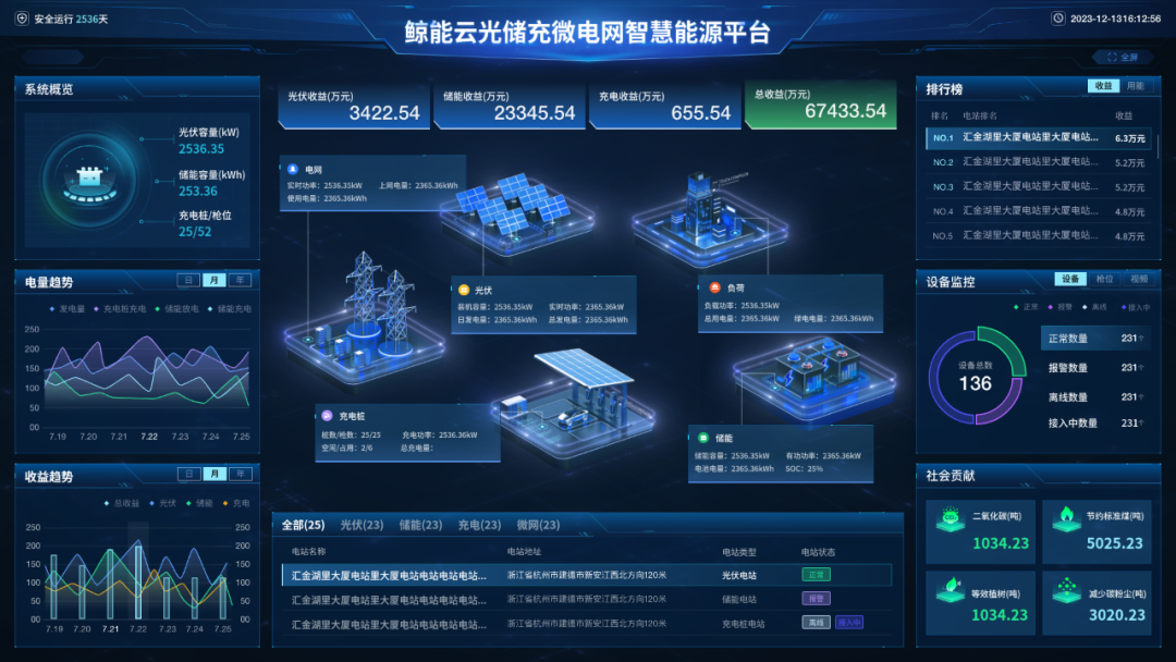 企业可通过鲸能云整合“光伏 + 储能 + 充电桩”协同模块,利用峰谷价差套利来提升综合收益。鲸能云4.4版本的升级不仅深化了原有功能的应用场景,同时也引入了光储充微电网的解决方案,以满足市场不断变化的需求。
