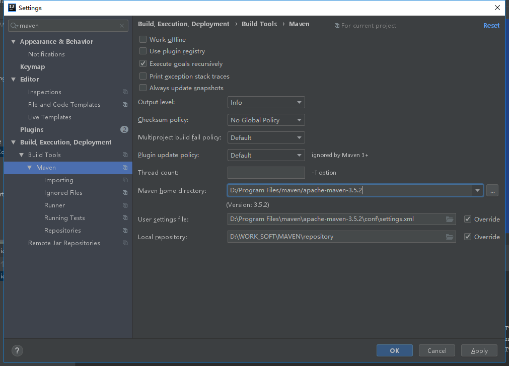 Settings — Build,Execution,Deployment — Build Tools — Maven