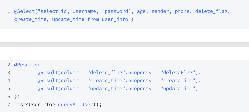 如果其他 SQL 语句,也希望可以复用这个映射关系,则可以给这个 Results 定义一个名称。